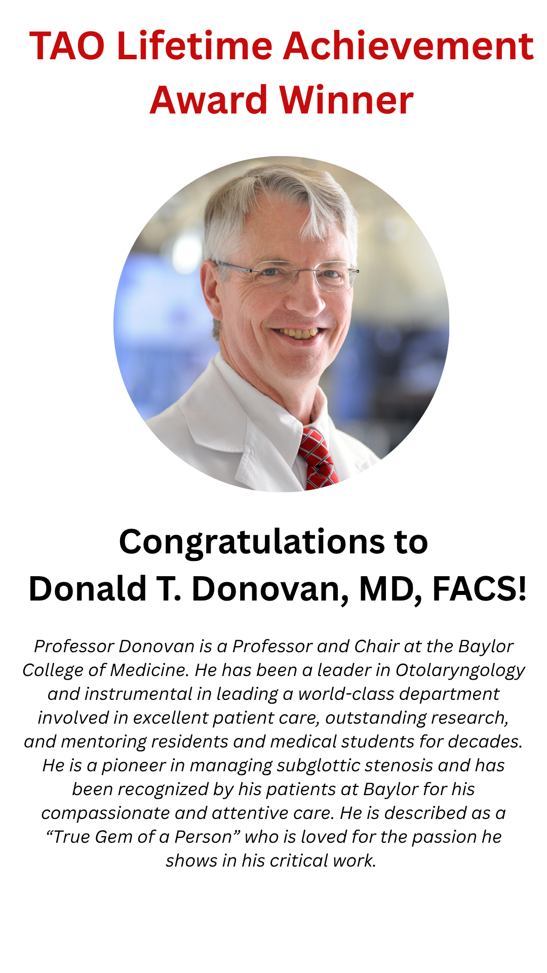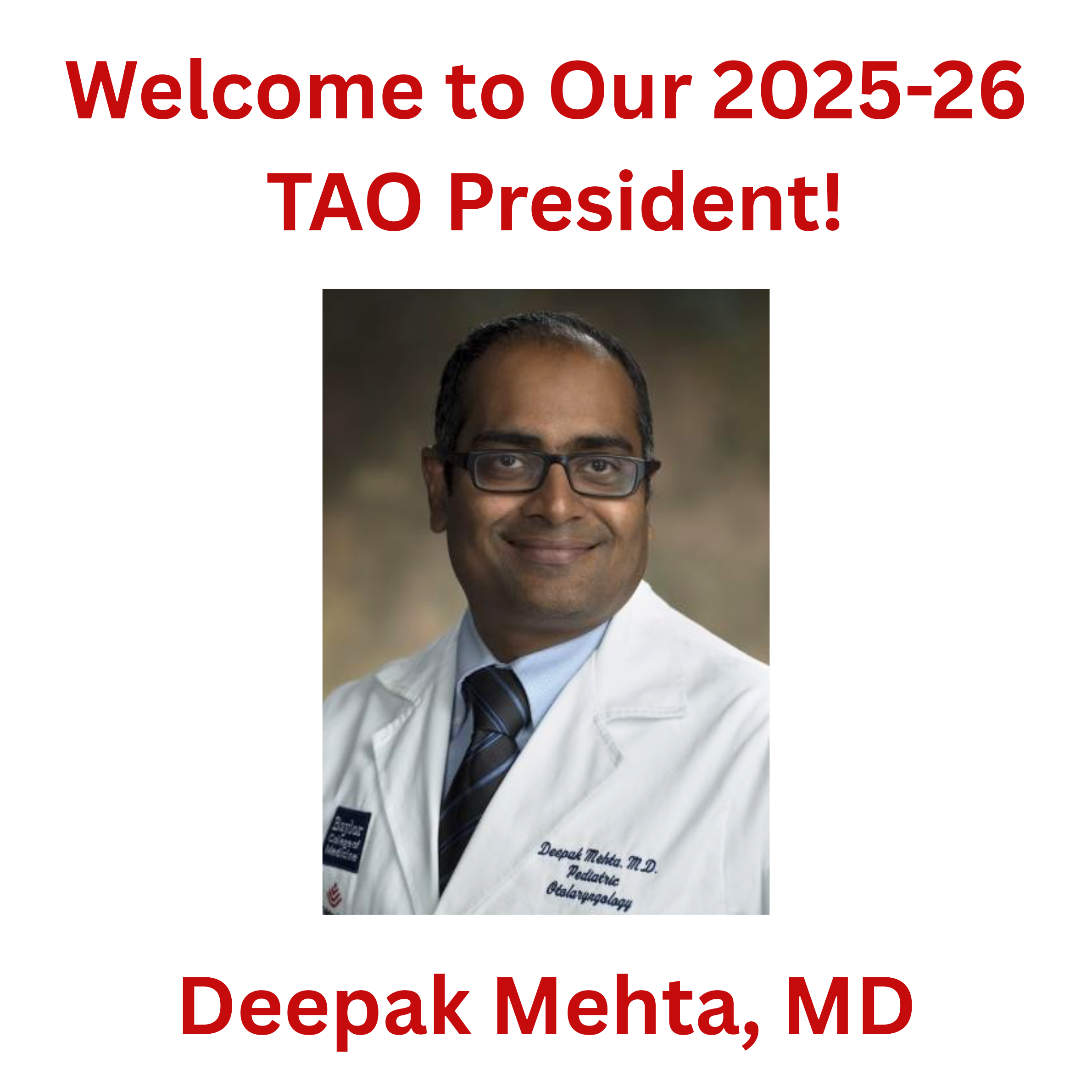 Established in 1959, the Texas Association of Otolaryngology Head and Neck Surgery is the primary statewide professional organization dedicated to the practice of otolaryngology for Texas Physicians. The TAO provides a strong resource for education, networking, leadership and advocacy specifically targeted to otolaryngologists and the practice of otolaryngology.