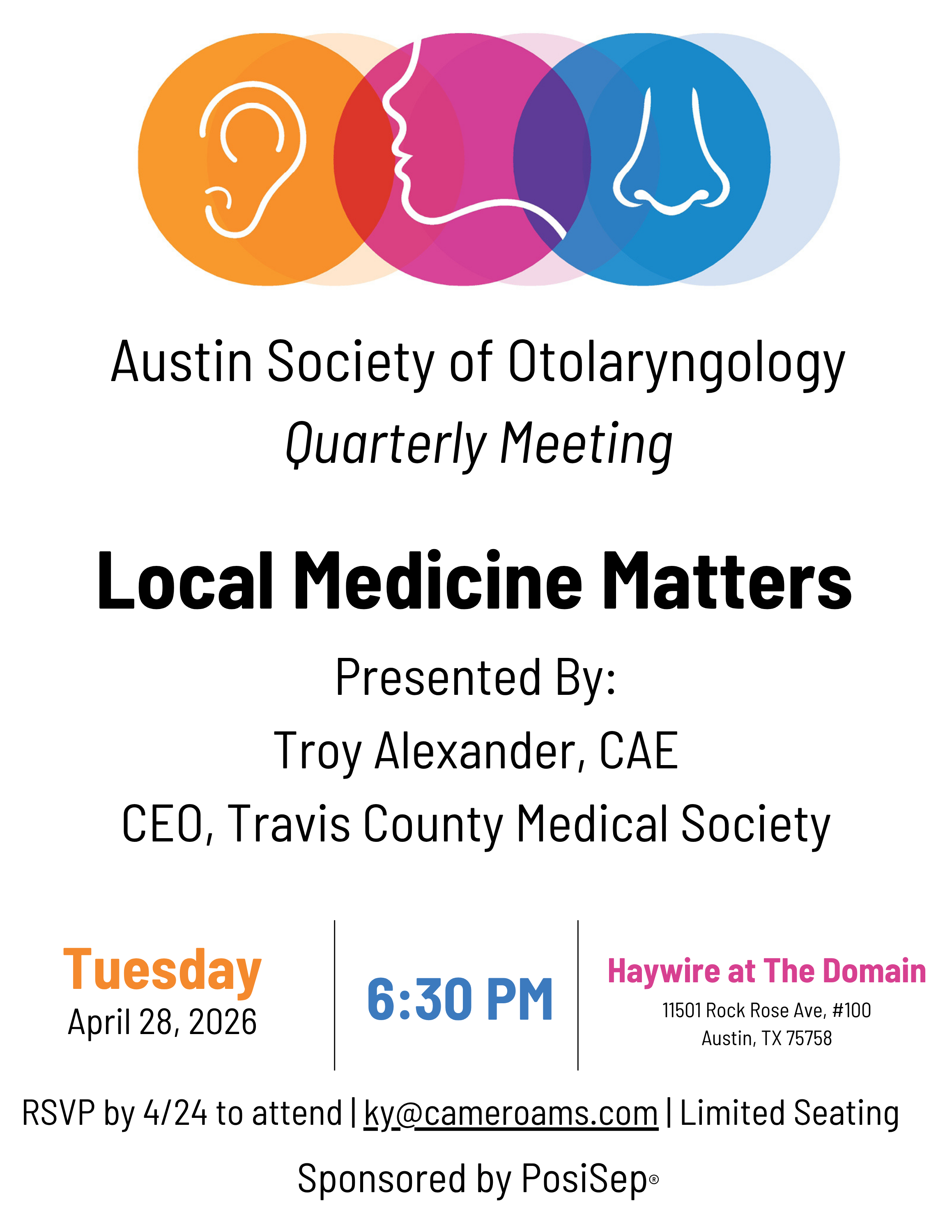 Austin Society of Otolaryngology (ASO)The purpose of Austin Society of Otolaryngology – Head and Neck Surgery (ASO) is to improve patient care by advancing scientific knowledge in the field of otolaryngology – head and neck surgery and to promote good fellowship among members of the society. ASO was founded on October 29, 2012 as a non-profit organization in response to the need to increase communication and foster camaraderie among surgeons practicing otolaryngology in Austin as well as to provide continuing education. We are a tax-exempt organization under 501c(3). Note: ASO dues are $250 and include TAO dues.