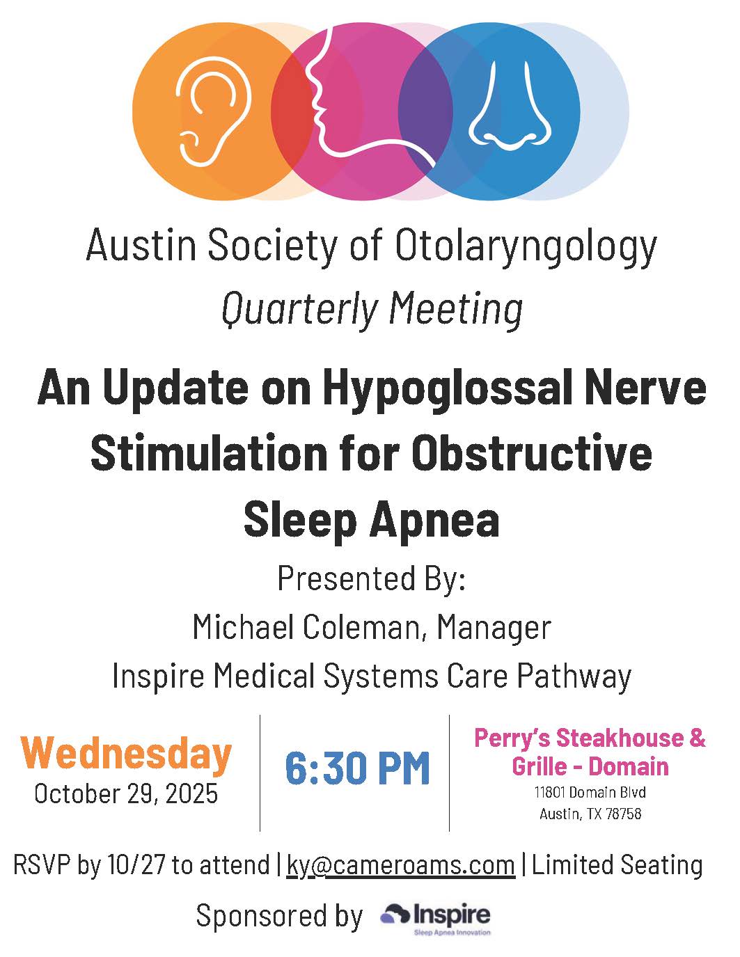 Austin Society of Otolaryngology (ASO)The purpose of Austin Society of Otolaryngology – Head and Neck Surgery (ASO) is to improve patient care by advancing scientific knowledge in the field of otolaryngology – head and neck surgery and to promote good fellowship among members of the society. ASO was founded on October 29, 2012 as a non-profit organization in response to the need to increase communication and foster camaraderie among surgeons practicing otolaryngology in Austin as well as to provide continuing education. We are a tax-exempt organization under 501c(3). Note: ASO dues are $250 and include TAO dues.